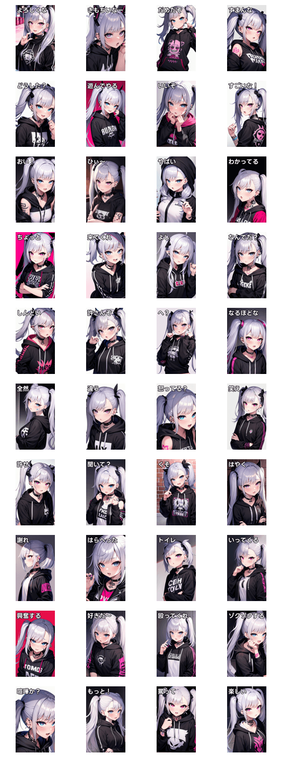ピアス タトゥー女の子銀ツイン2 -LINEスタンプマニア