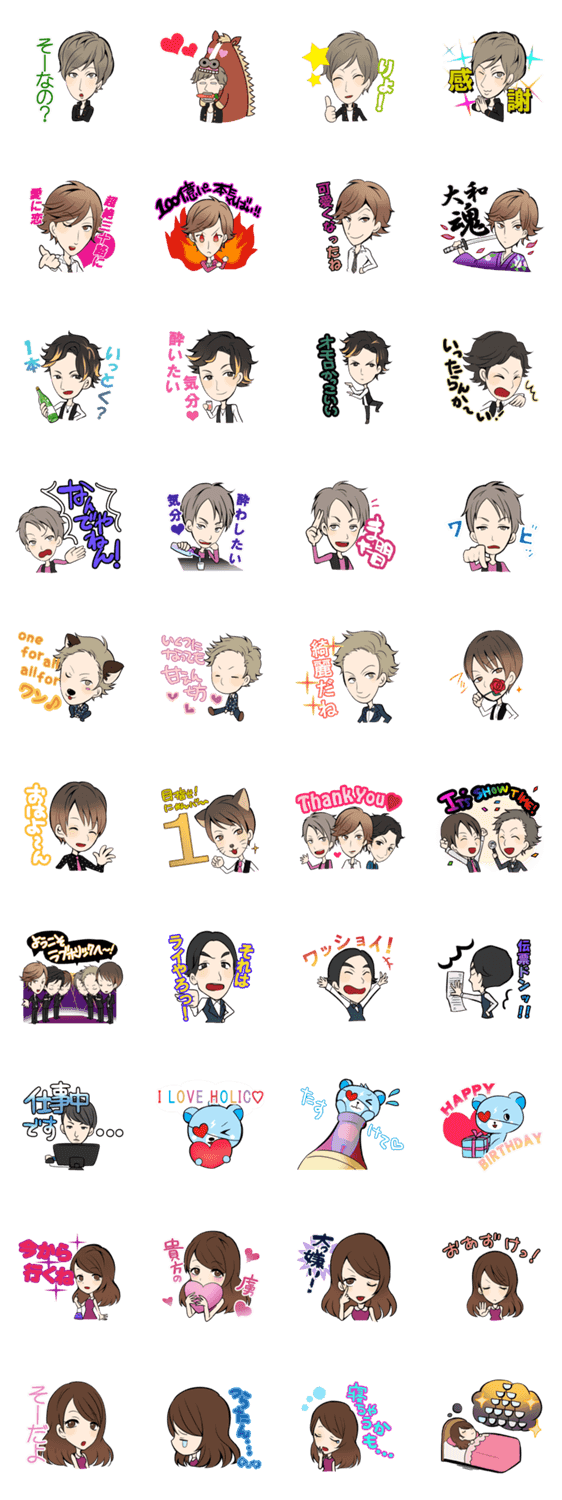 大阪ミナミを代表する、おもろカッコいいホストクラブ『LOVEHOLIC』のスタンプ第一弾が遂に登場!!日常会話は勿論、各ホストの口癖まで忠実に再現!
