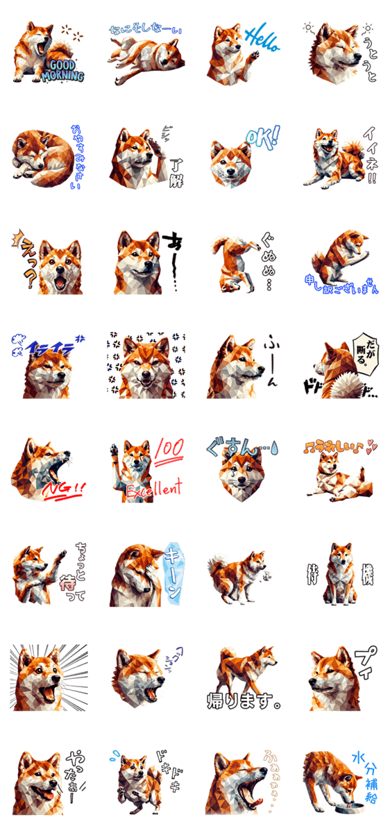 ポリゴンになった柴犬のスタンプ -LINEスタンプマニア