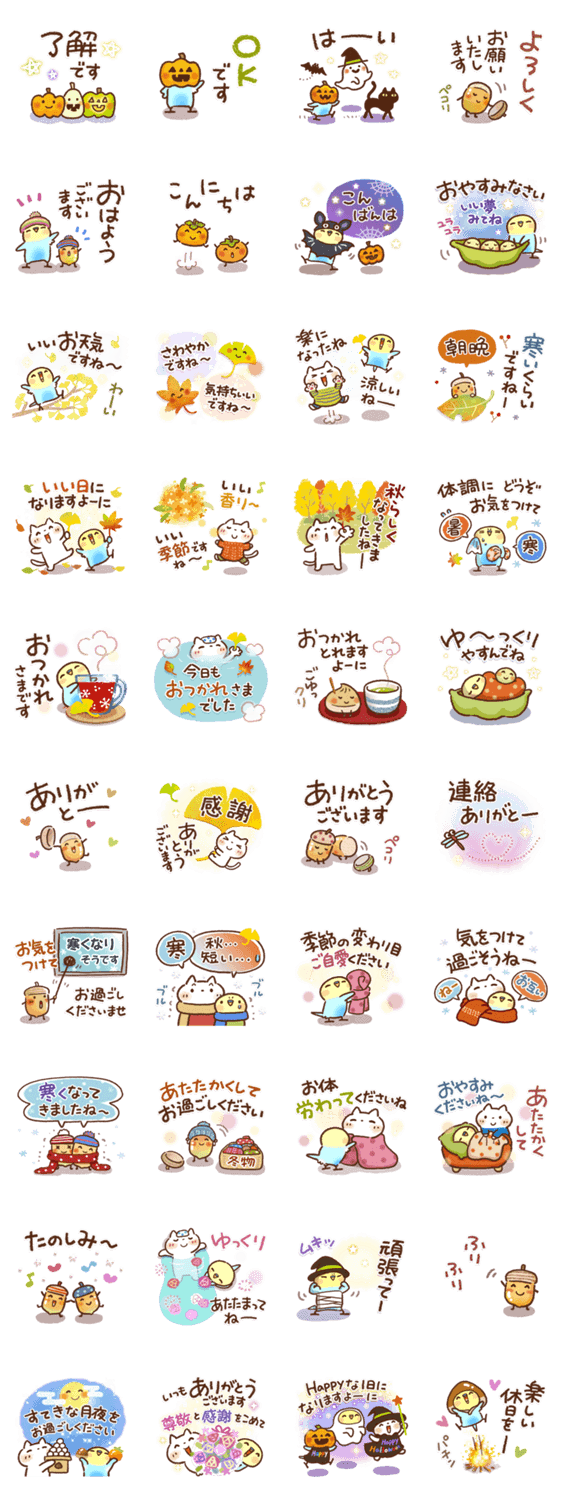 秋冬に便利なスタンプです♪(寒い・十五夜・月見・敬老の日・ハロウィン入り)