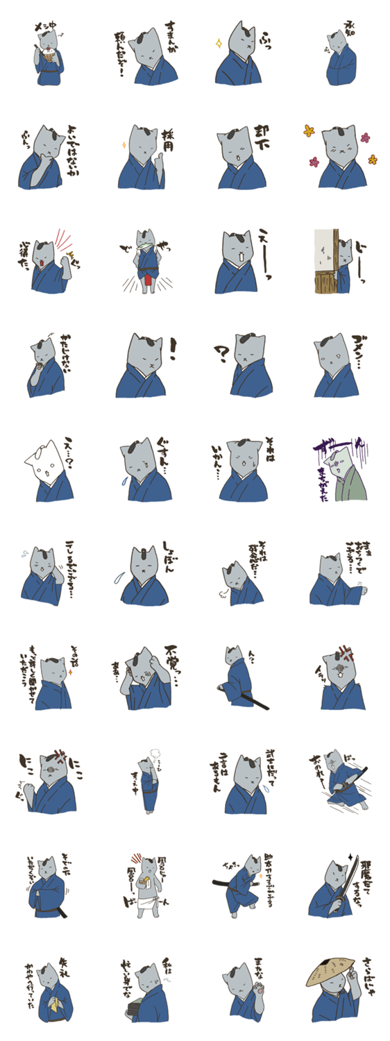 孤高の侍ネコ宮さん。でも、ちょっとお茶目。渋さとお茶目さを兼ね備えたスタンプです。日常に使いやすいものを揃えました。可愛い過ぎるのはちょっとという方に!