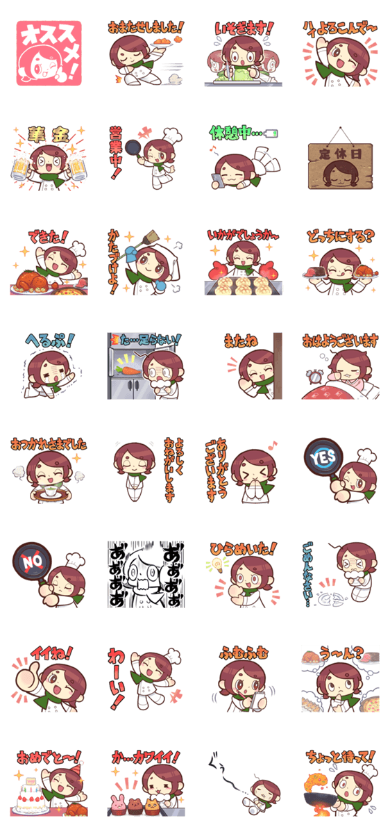 アズキッチン公式キャラクターのあずきちゃんが、頑張って働いたり、そうでもなかったりするスタンプです!