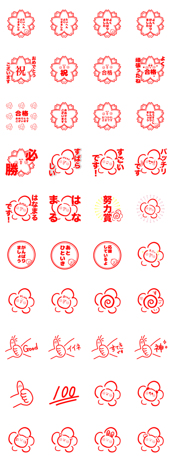 かわいいはなまる大集合!勉強、受験、仕事、スポーツ、がんばるあの子に送りたいごほうびスタンプ。入学、卒業、合格などのお祝い〜日常まで使えるよ。シンプル/でか文字