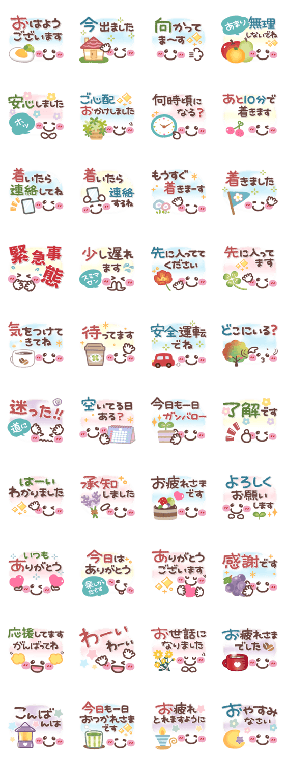 でか文字で見やすい待ち合わせに便利なスタンプです。挨拶/ありがとう/食べ物/デカ文字/気持ち伝える/使いやすい/見やすい