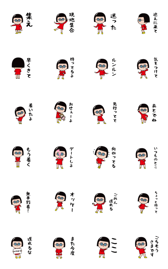 いつもの面白スタンプ。赤ワンピースの待ち合わせ編です