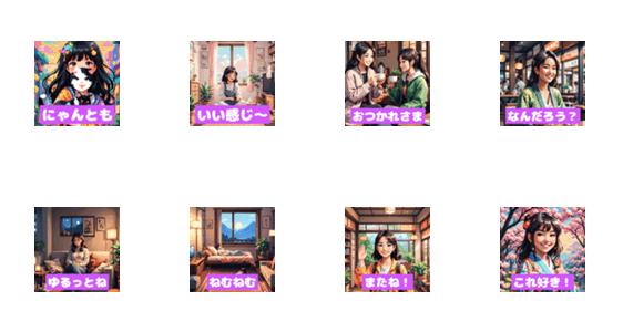 日常のさまざまなシーンで使える、可愛らしいスタンプセットです。「いい感じ~」や「おつかれさま」など、あなたの気持ちをゆるっと伝えます!