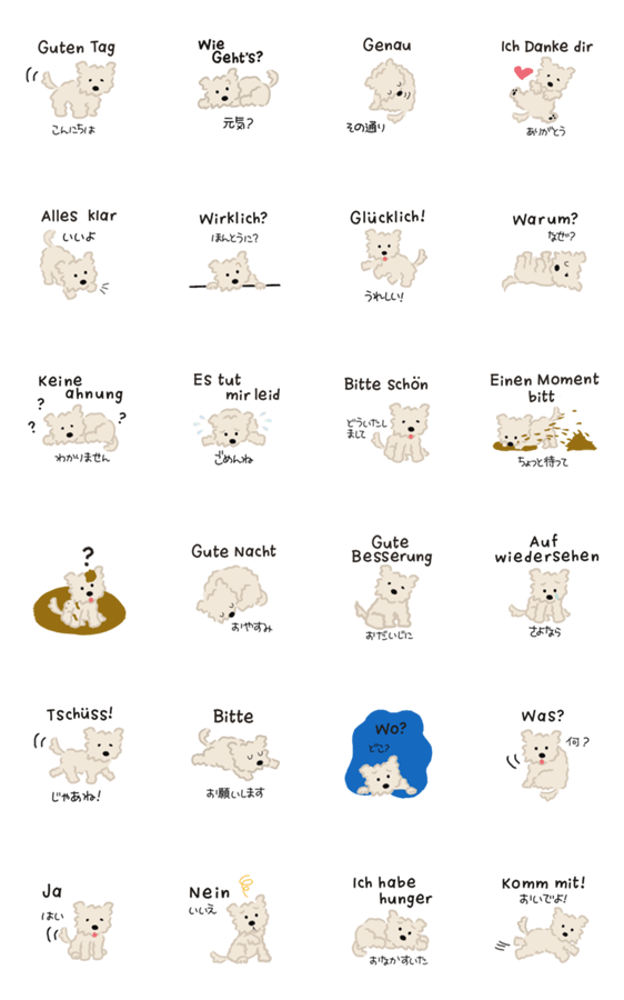 簡単な日常会話に使えるスタンプです。楽しくドイツ語を使ってみよう。