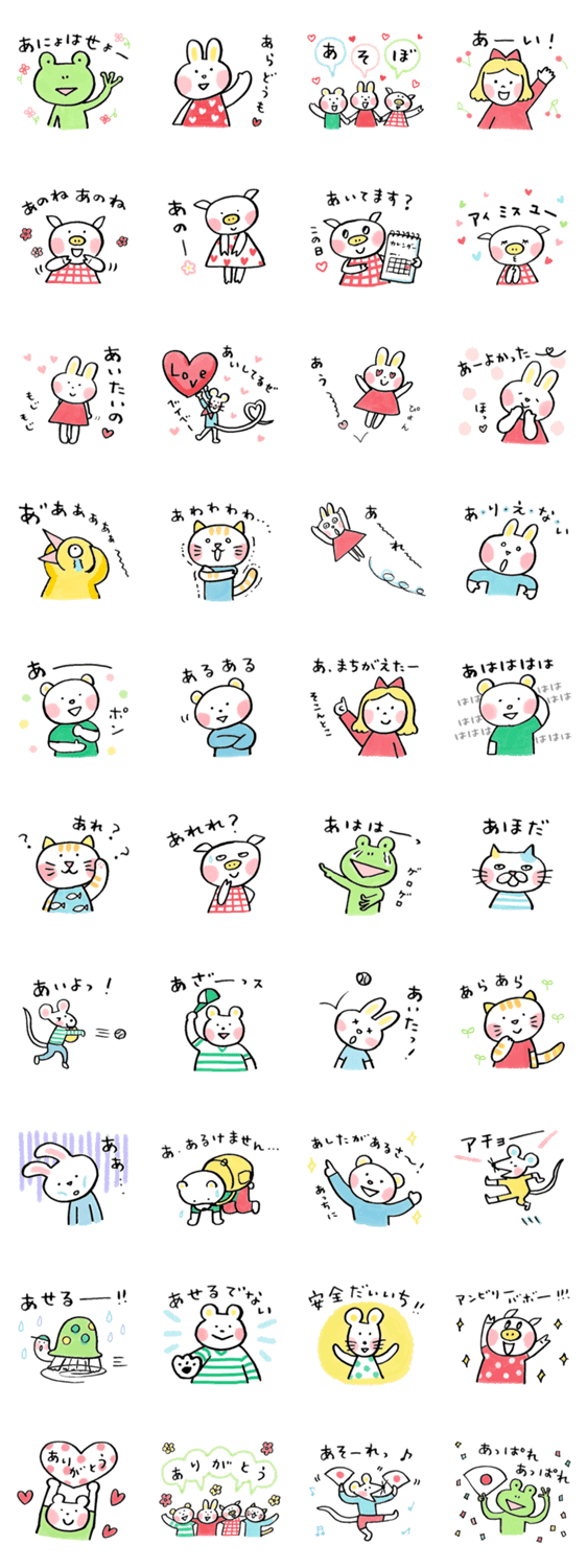 「あ」から始まる日常言葉を集めました♡お友達やカップルで気軽に楽しく使ってね!ゆる〜い手描きの動物たちがトークをかわいく演出してくれます♪