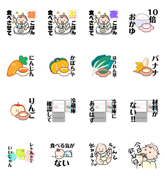子供に離乳食をあげてほしいときに使うスタンプです。