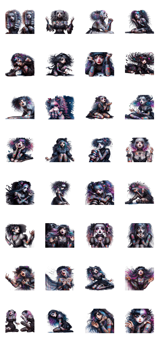 "ゴシックガール、あなたが恋しいです、恋しい、愛、ロマンス、感情、ダーク、LINEスタンプ、イラスト、表現、コミュニケーション、
