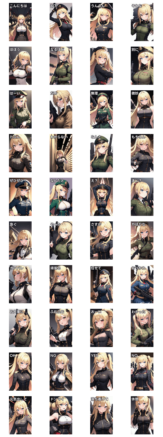 銃に囲まれるピアス軍人女の子金 -LINEスタンプマニア