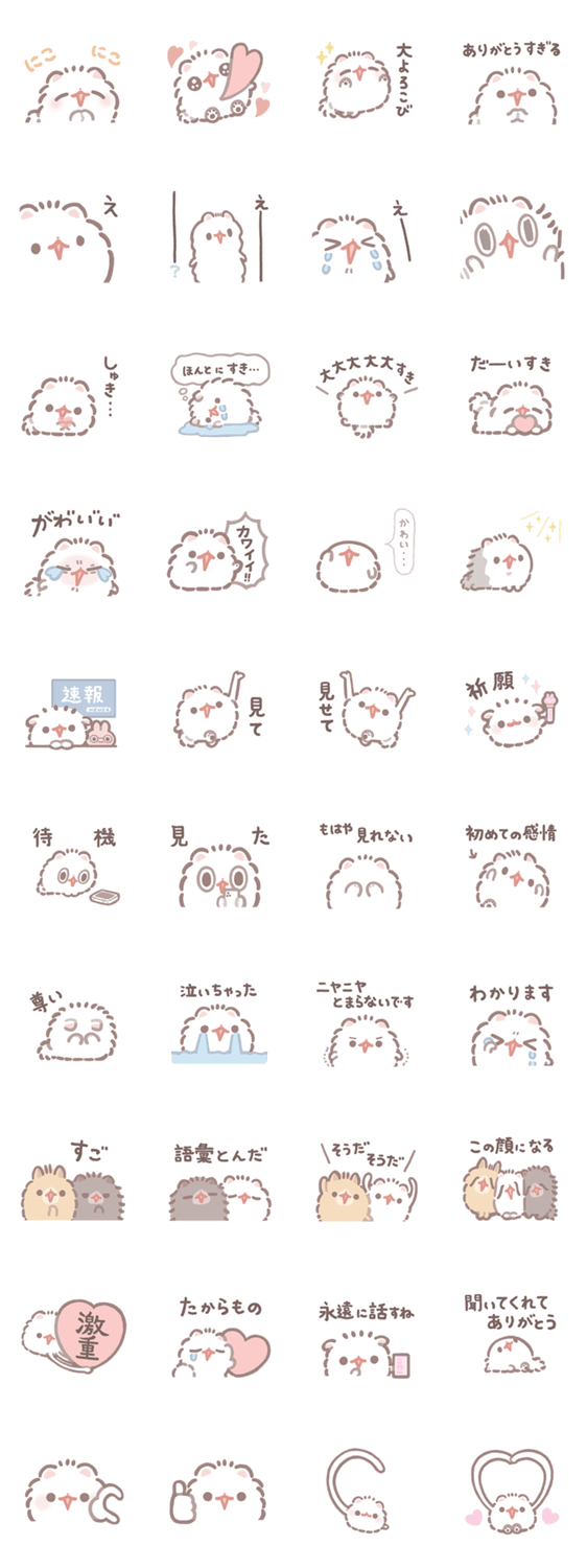 お餅と犬と人の間で生きるポメラニアン、もちとなかよしのスタンプ。友人や家族や恋人・推し活に使いやすい感情表現が豊かなバージョンです。