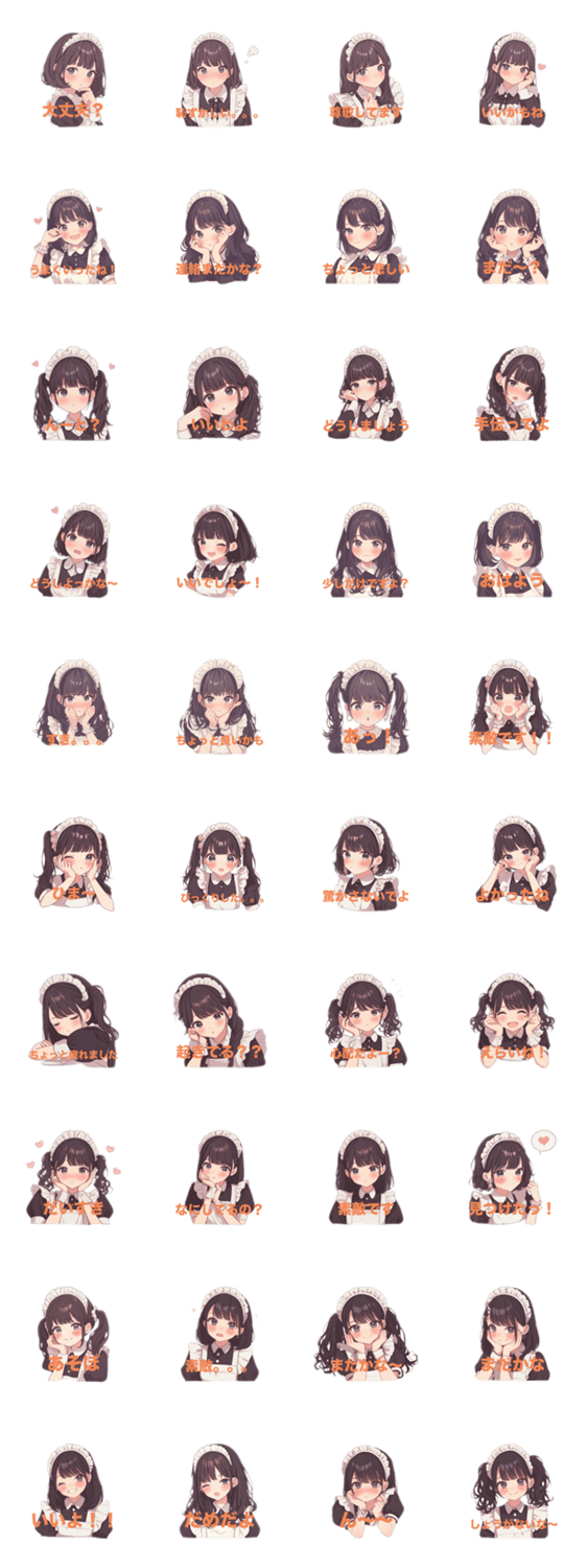可愛いメイドさんのほのぼのスタンプ第二弾です。AIで作成しています。