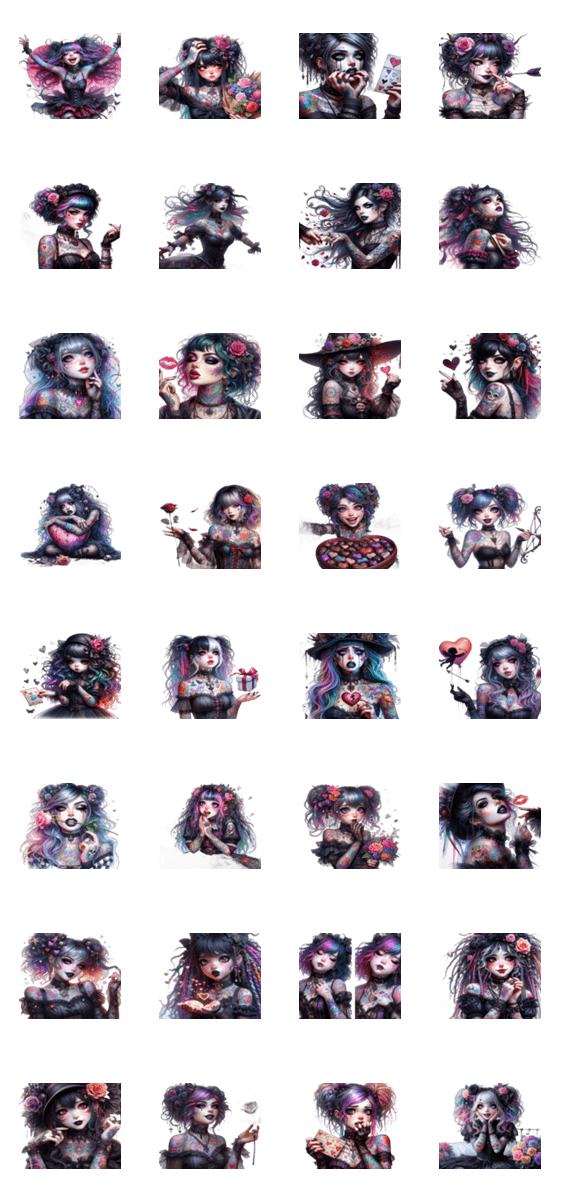 "ゴシックガール 君を愛してる、ゴシック、愛、ダークスタイル、ロマンス、LINEスタンプ、イラスト、コミュニケーション、
