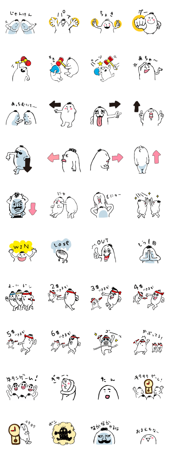 じゃんけん、たたいてかぶって、あっちむいてほい、バトンリレー、牛タンゲーム、チクタクゲームが遊べます。2人から複数で楽しめるものまで用意しました。みんなで遊ぼう!