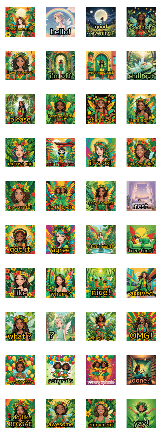 カラフルなレゲエの妖精_英語 -LINEスタンプマニア