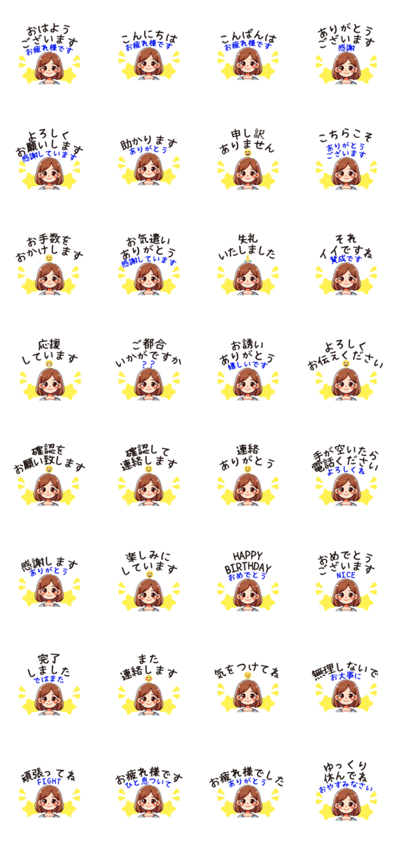 可愛い女性が仕事で使うスタンプで楽しいLINE通話をしてみてね。