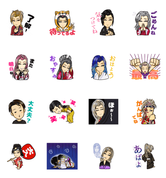 大衆演劇 花組むらさき 三代目南條のぼるスタンプが可愛いイラストになって登場!!たくさん使って会話を盛り上げてね♪