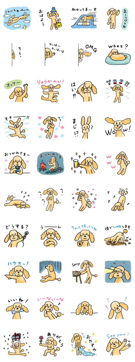 トイプードルの男の子☆毎日使いやすい日常言葉を集めました♪ ※こちらのスタンプは「人になりたい犬」の改訂版です。