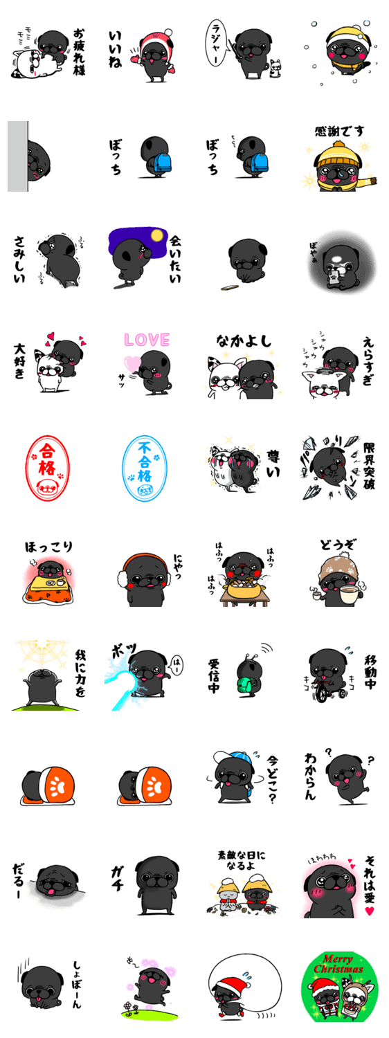 黒パグのくう〜6。冬 -LINEスタンプマニア