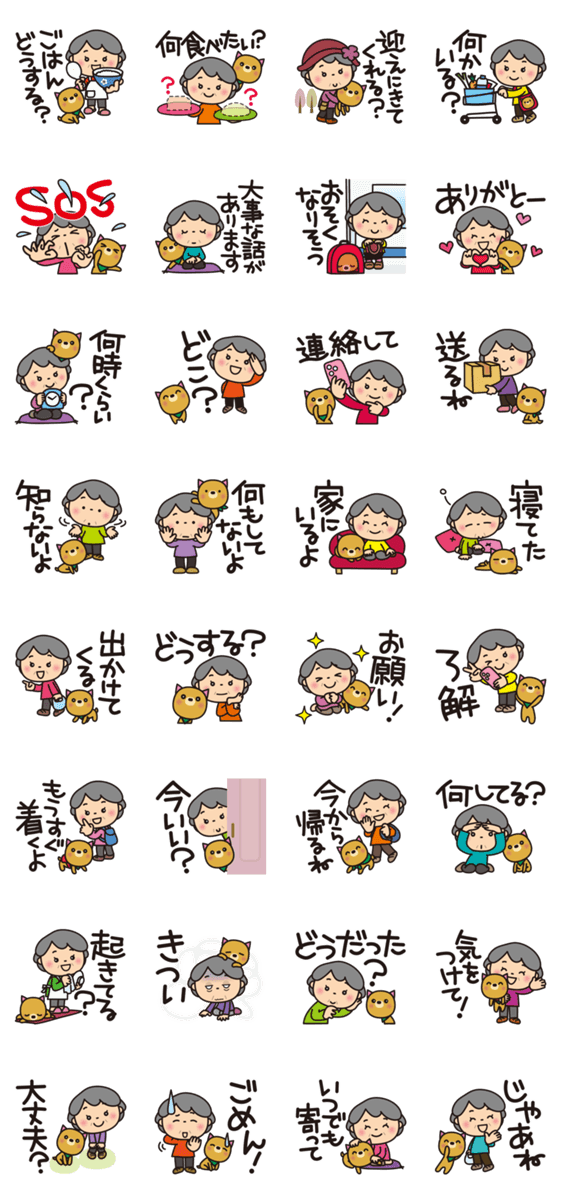 優しくてキュートなばぁばと子犬のスタンプです。一緒に暮らす家族や離れて暮らす家族への「ちょっとした連絡用」に。家族からおばあさまへ送るスタンプとしても。#犬の日