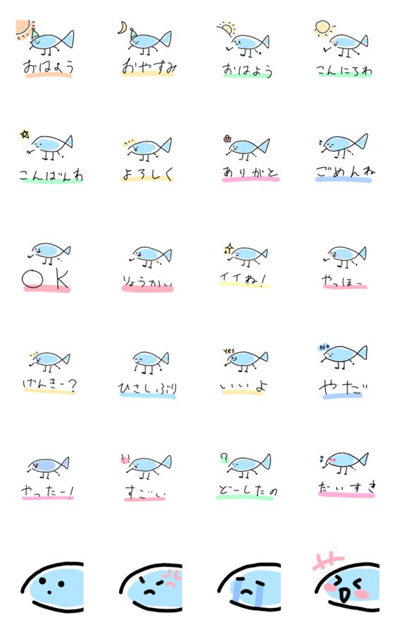 日常で使えるパステルカラーのおさかなスタンプです( ˶>ᴗ<˶)