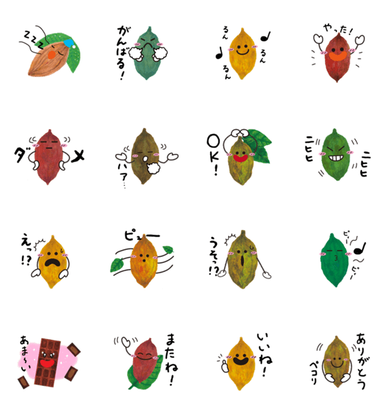 色とりどり、個性豊かなカカオ君がお話するよ。