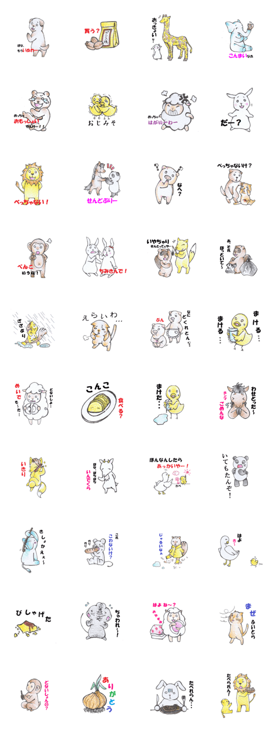 淡路島弁を話す動物たちのスタンプです。中には、淡路島ならではの食べ物も登場します。ぜひ使ってみてください。