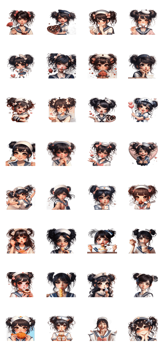 "セーラーガール ハグを求める、温かい、愛、抱擁、イラスト、LINEスタンプ、表情、