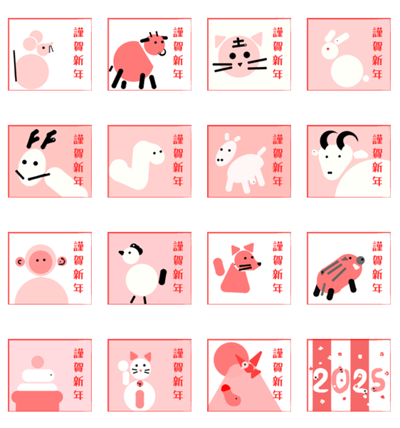新春紅白のピクトグラム風十二支 -LINEスタンプマニア