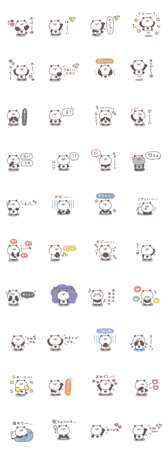 一つあると便利な小さくてかわいいぱんだのスタンプです。 パンダ/大人可愛い/シンプル/あいさつ/吹き出し/くすみカラー/カラフル/リアクション