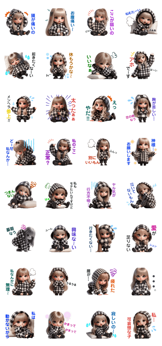 ネガティブ&メンヘラver. ギンガムチェック -LINEスタンプマニア