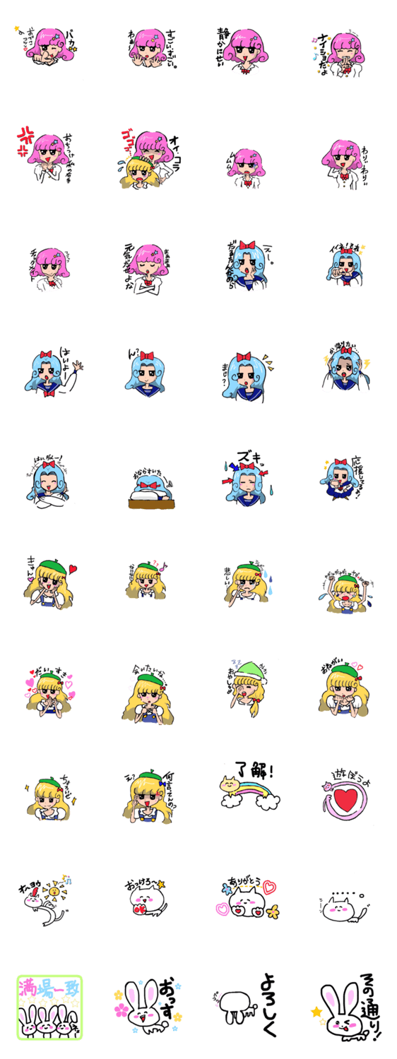 日常会話で使えるスタンプです。脱力だったり元気だったりときめいたりしょげたり。