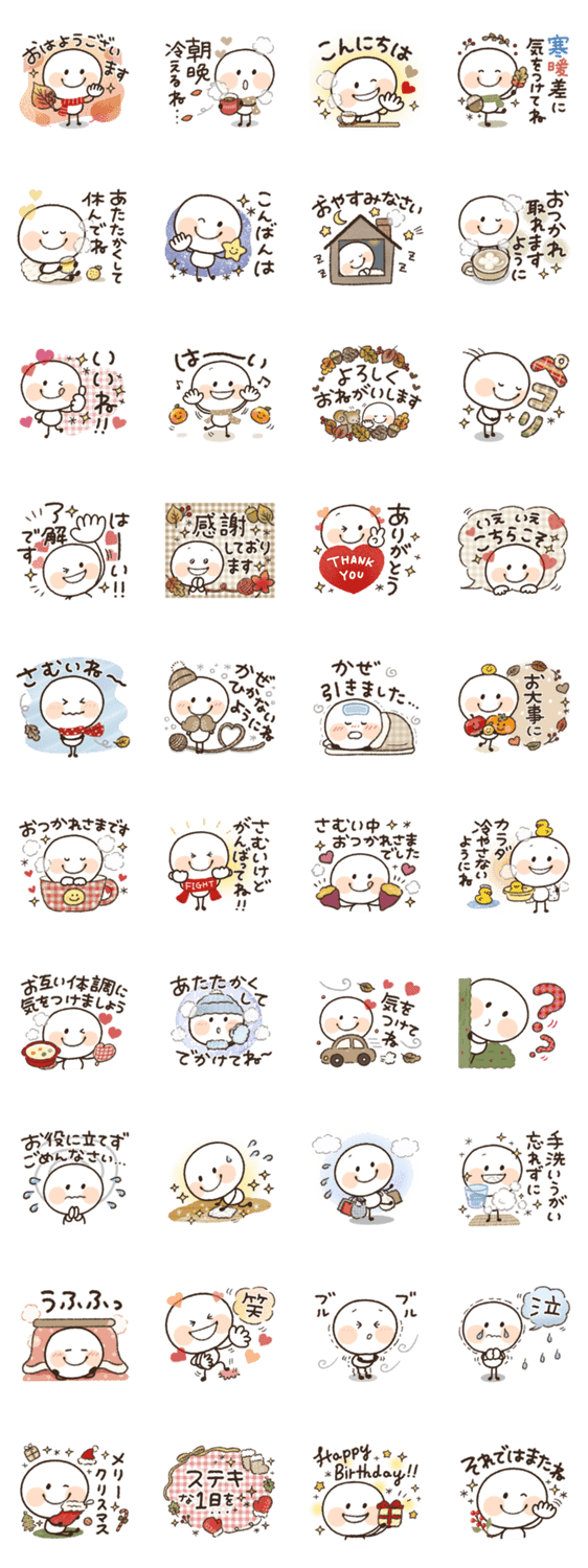 冬に使える♡スマイル棒人間のスタンプです♪シンプル/クリスマス/年末/思いやり/秋/冬