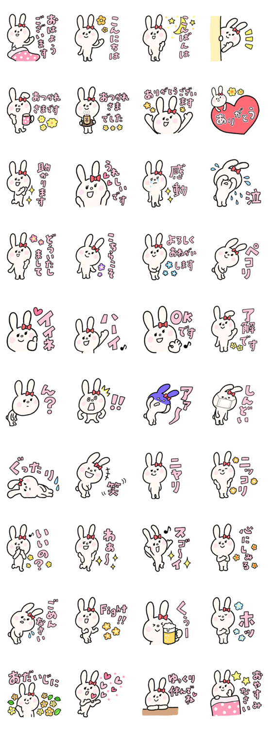 リボンうさぎのシンプルスタンプ -LINEスタンプマニア