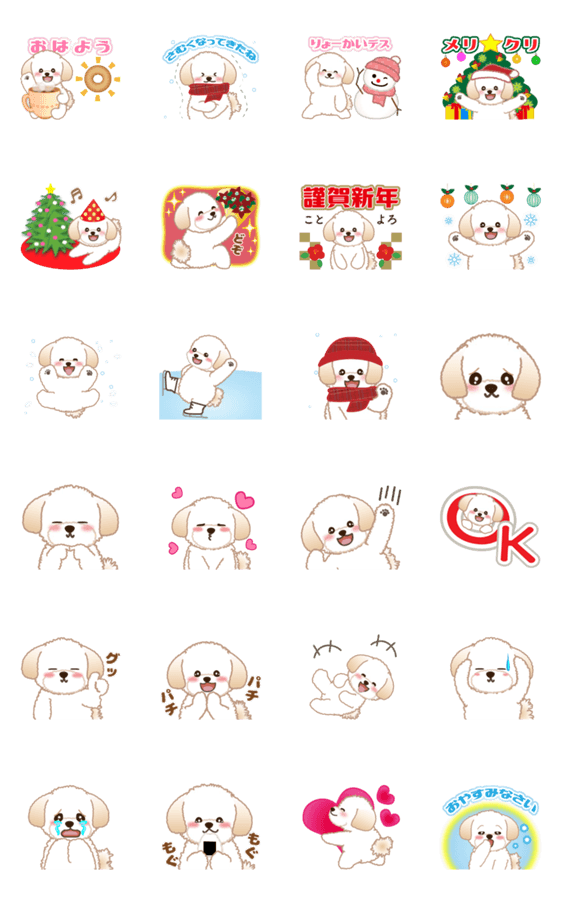 ふわふわでもこもこの犬だよ。冬。クリスマス。かわいい/ いぬ/トイプードル/マルプー/マルチーズ/わんこ/ワンちゃん/いぬ