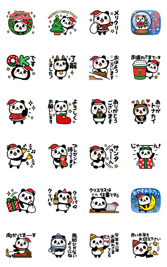 無難なパンダの無難に使えるアニメーションスタンプです。クリスマスシーズンに毎日使える便利なスタンプ♪冬のご挨拶、年末のご挨拶も!