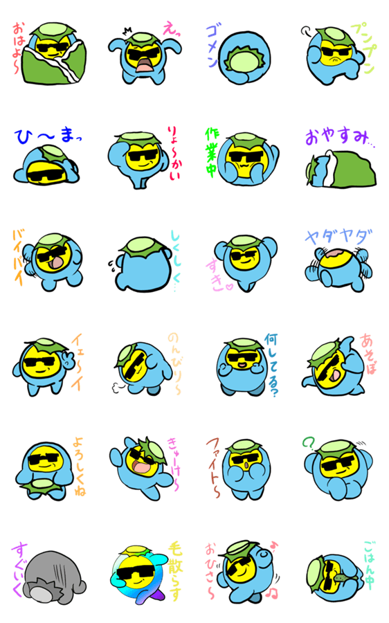 キラキラとまぶしくて、 可愛らしい河童のスタンプです!