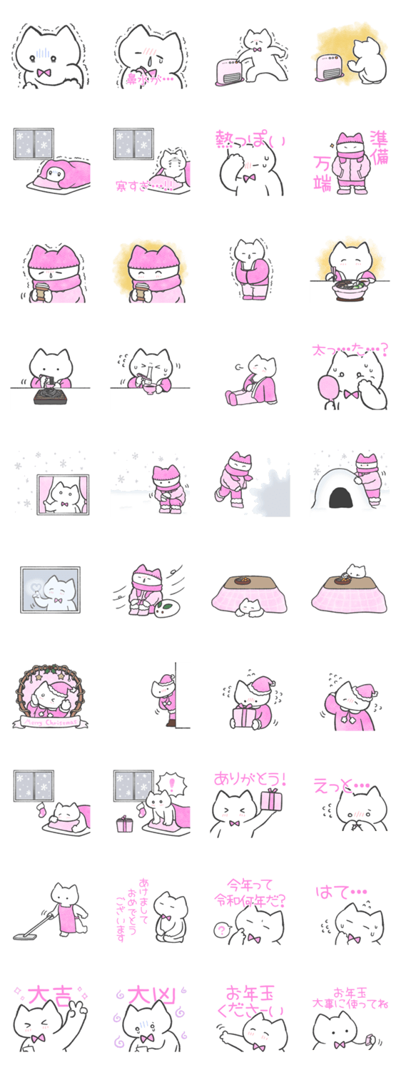 ピンク推しねこ(冬) -LINEスタンプマニア