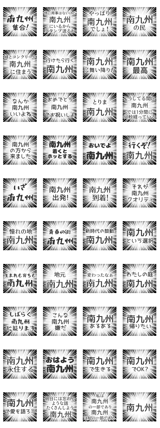 地元のための漫画風セリフスタンプ。集中線で叫べ。地元の人にも憧れてる人にも。面白いのが見つかると嬉しい。集中線。地元愛。