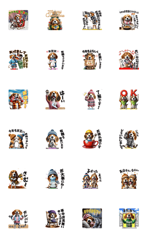 年末年始の気分を盛り上げよう!ビーグル犬があなたの挨拶を可愛くサポート。今だけの特別なスタンプをお見逃しなく!