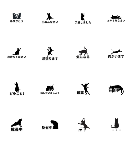 日常で使える一言 × 猫のシルエット。クールにもキュートにも使えます。