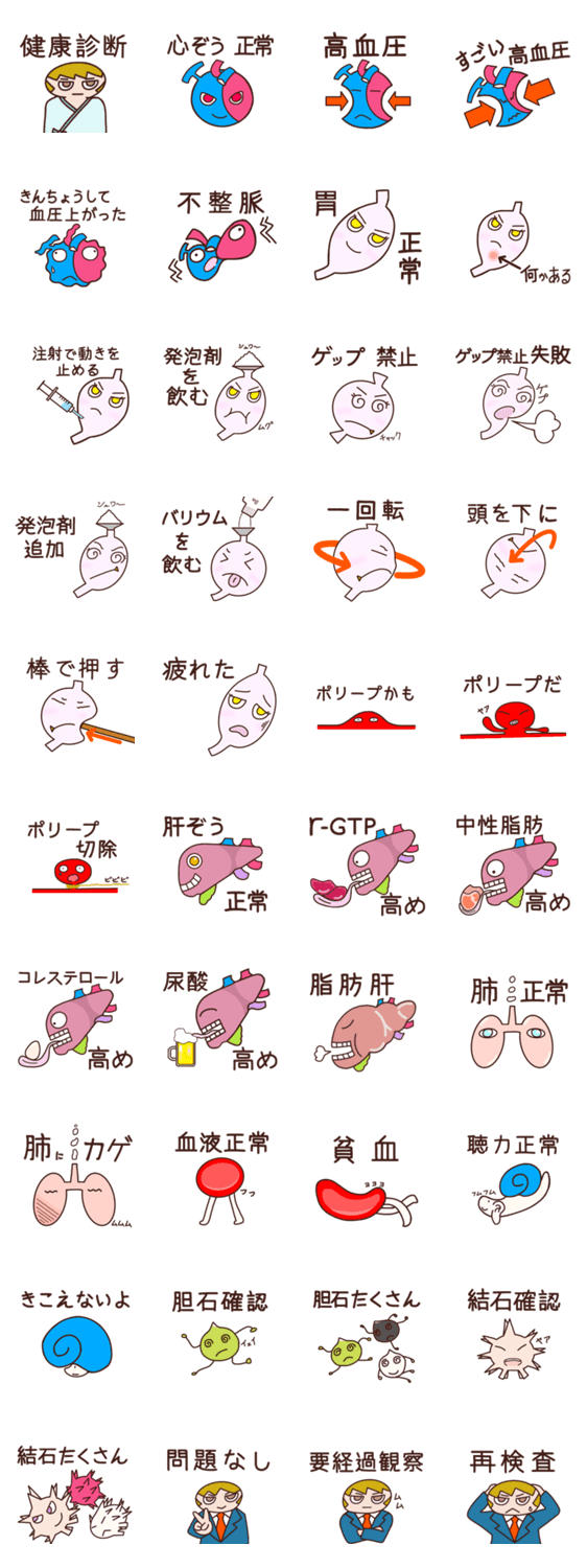 バリウム検査も含んだ中高年向け健康診断スタンプです。 血圧や尿酸値、結石に胆石、いろいろ気になる方に。