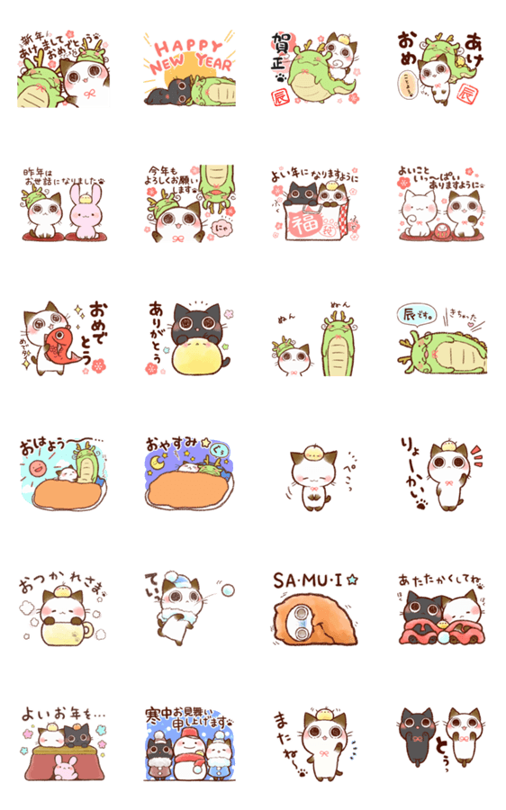 ※2024あけおめスタンプの再販です。動く!辰年なので龍のたっつぁんと、時々おはぎさん。年末年始のご挨拶や日常でも♪(お正月/冬/年賀/寒中見舞/辰)【絵/タカオエリ】20