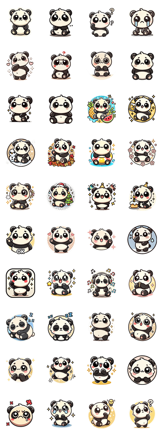 ふわふわ子パンダがトークを癒やします。シンプルで愛らしいスタンプで、友達や家族との会話をもっと楽しく!