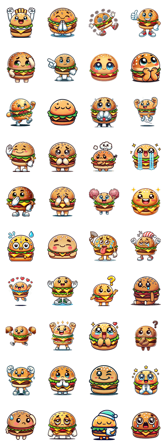 ニコニコバーガーがトークをおいしく彩る!シンプルでかわいいスタンプで、友達や家族にあたたかい気持ちを届けよう。