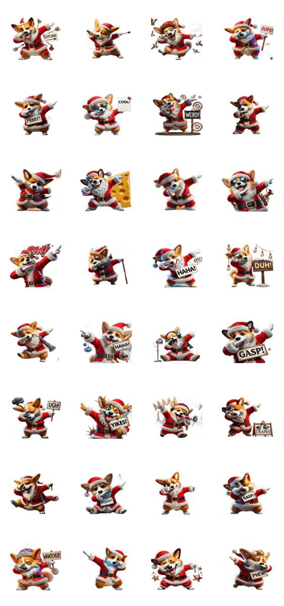 クリスマスコーギー「よっ」絵文字スタンプ、クリスマスムード、楽しい、面白い、可愛い、犬、LINEスタンプ、イラスト、交流
