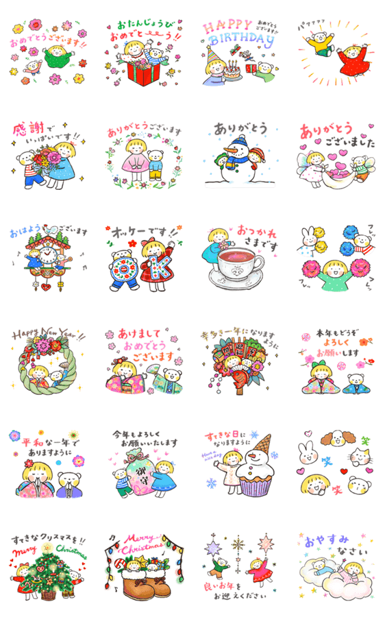 かわいく飛び出す♪はるちゃんとふうくんのスタンプが登場!お正月からお誕生日や日常のご挨拶まで入った楽しいスタンプです♡[クリスマス,年末年始,年賀挨拶,正月,お祝い]