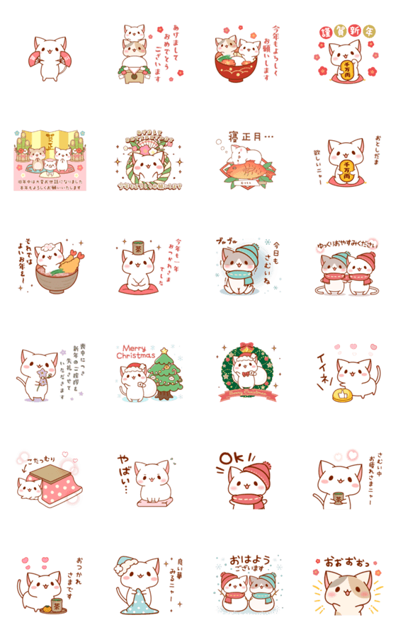 だいすきネコちゃんの年末年始&お正月アニメスタンプ! 社会人にも使いやすい敬語から、家族や友達に送りやすいラフな挨拶まで、送る相手に合わせて使い分けられます♡