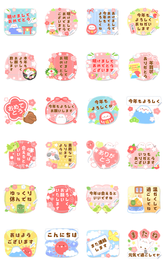 | スタンプ説明 | 好きな文章に変えられる可愛いお正月スタンプですあけましておめでとう,お正月,年末年始,新年,あけおめ,年越し,大晦日,謹賀新年,年賀状,様々な場面でのご挨拶に使ってね♬ 現在この商品は一部のスマートフォン版LINE 10.3.0以上のトークルームでのみ使用できます。動作環境の最新情報はヘルプをご確認ください。 |